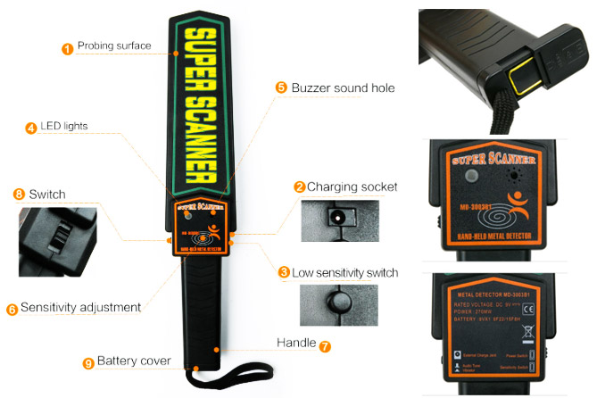 เครื่องตรวจจับโลหะ  Super Scanner ตรวจจับโลหะได้หลากหลายชนิดรวมถึงอาวุธต่าง